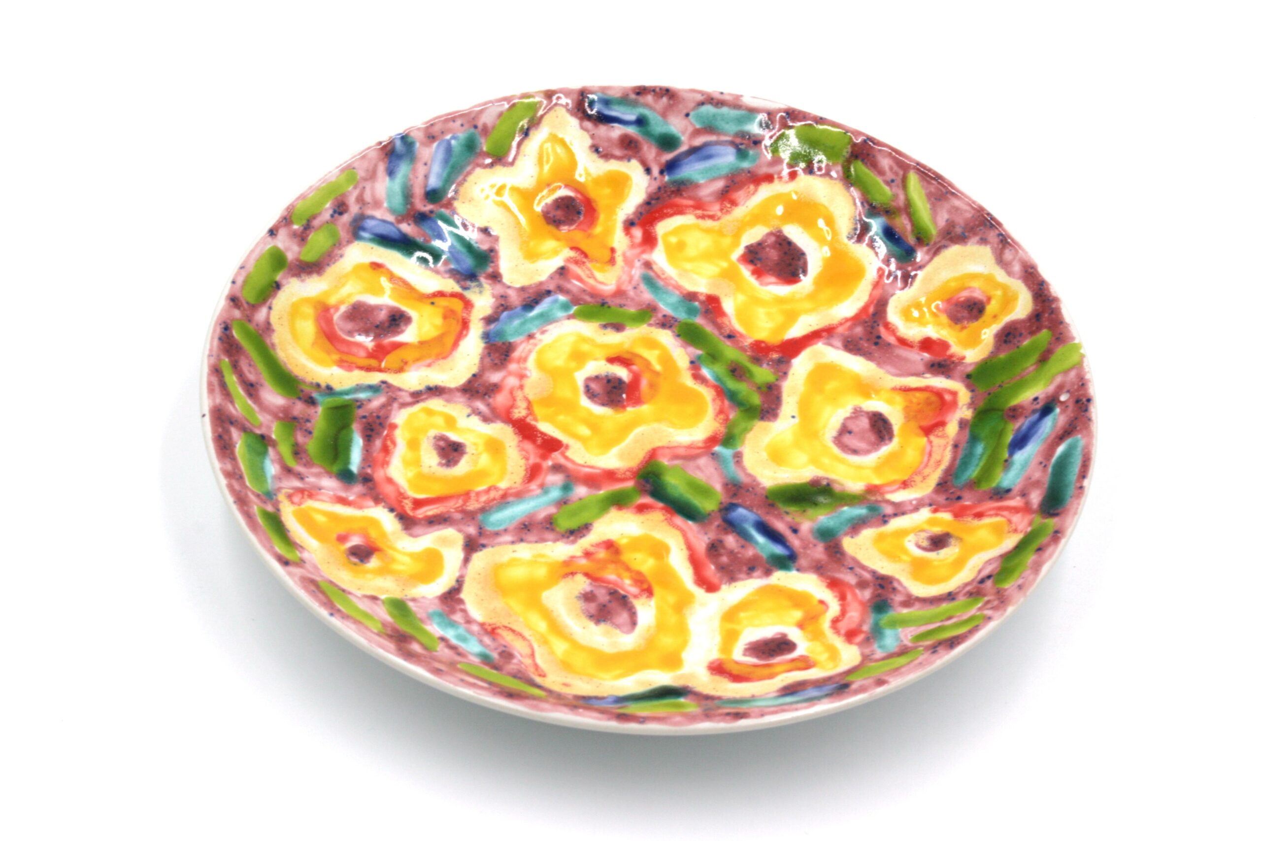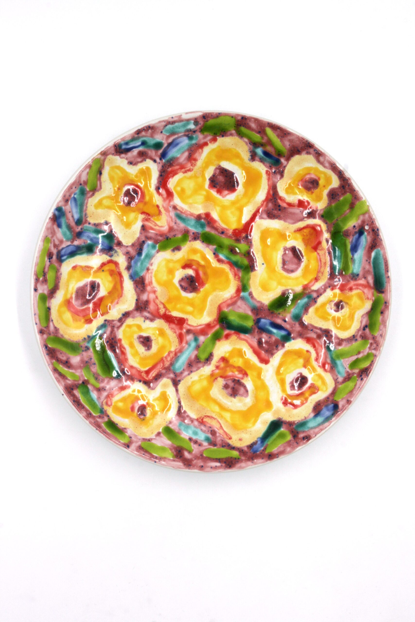 Talerze z motywami prac uczestników Warsztatu Terapii Zajęciowej „Arteria”. Każdy z talerzy ma unikatowy charakter i tworzony jest w pojedynczym egzemplarzu.